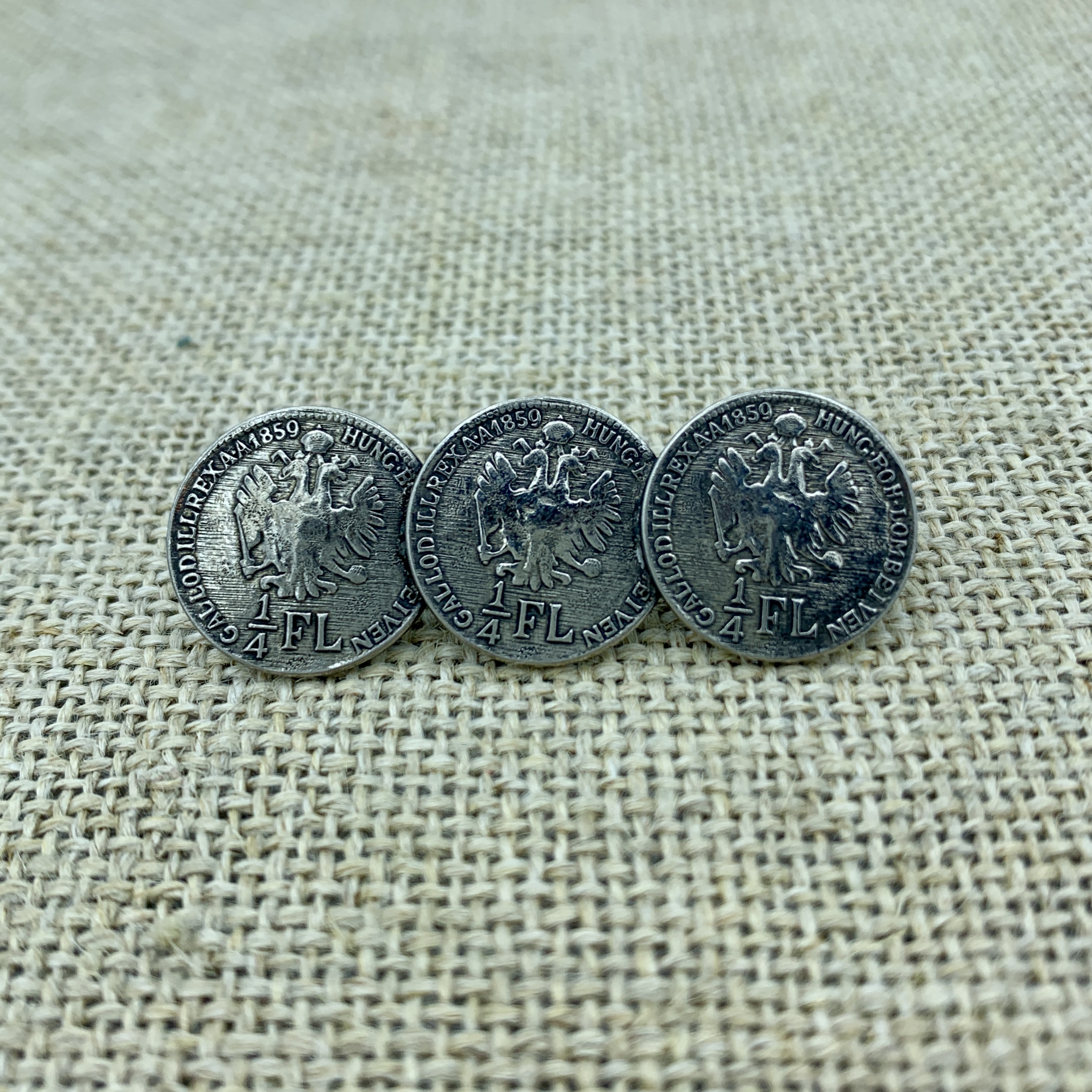 Die Prägung auf den Münzen, bildet einen Viertel-Taler mit Doppelköpfigen Adler ab.