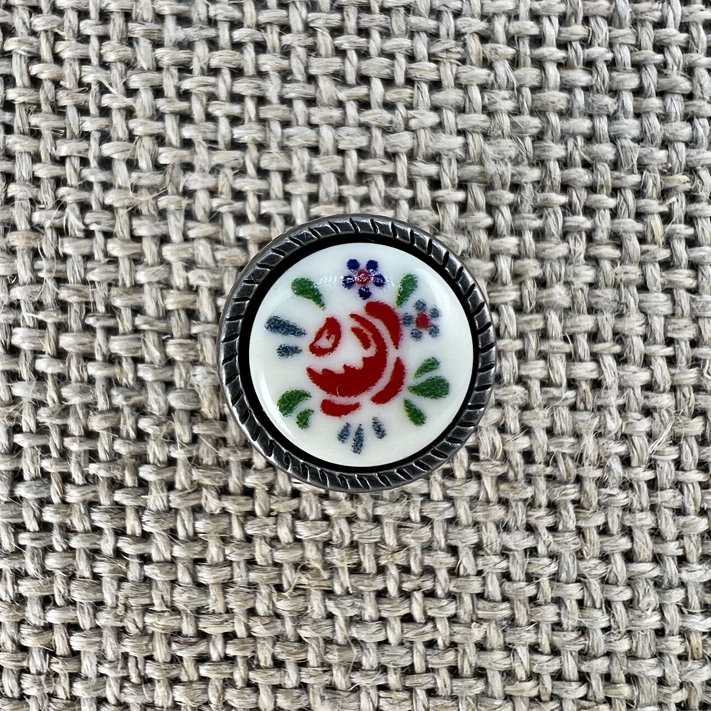 Wir bieten dir unseren schönen Knopf, mit neun verschiedenen Blumeneinlagen an.