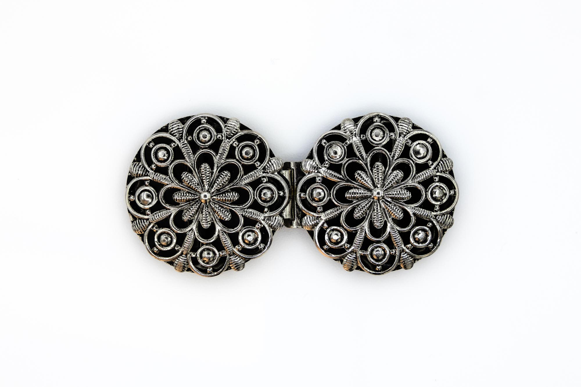 Ob als Trachtengürtel oder Abschluss für deine Drindl-Schürze macht diese alt-silberne Schließe immer etwas her.