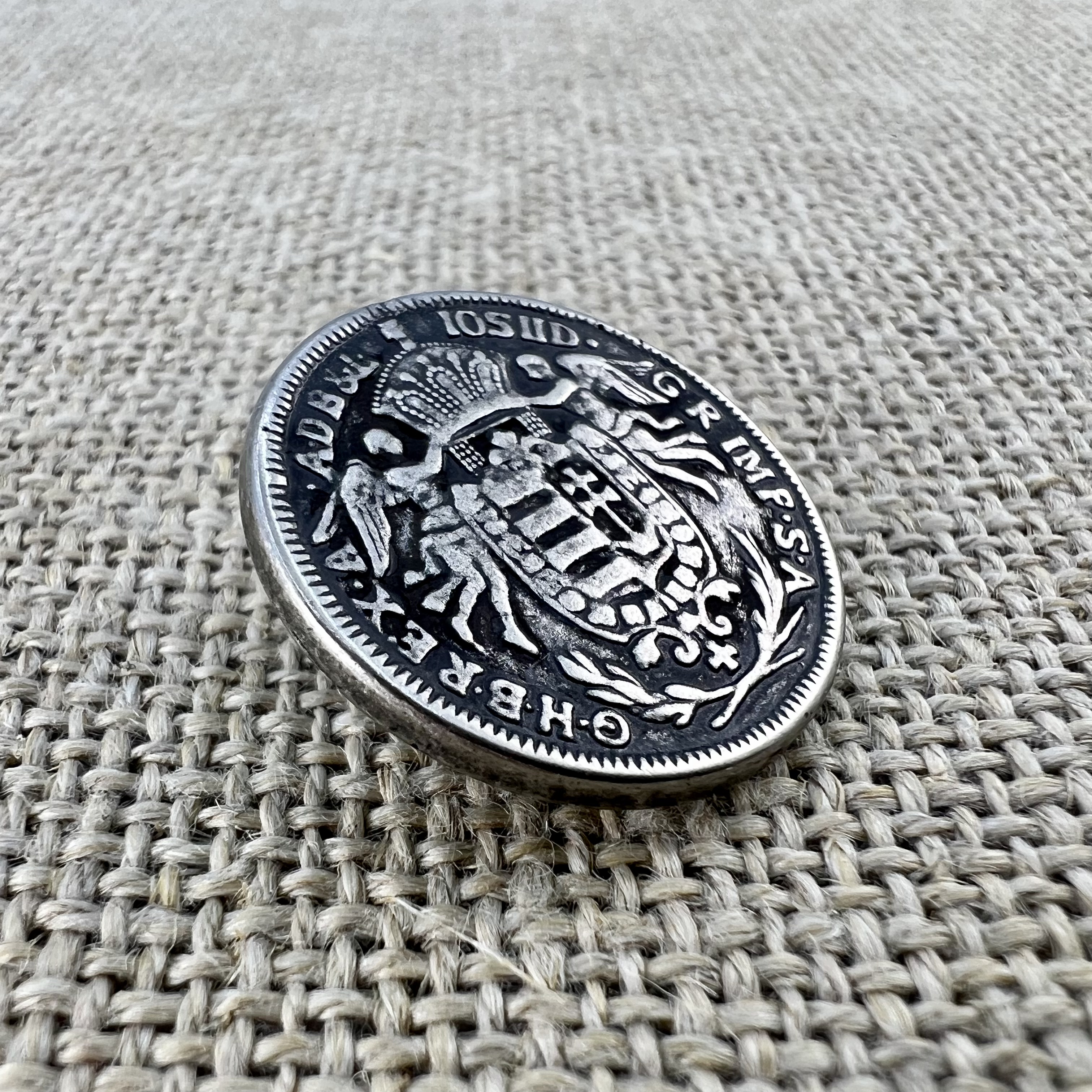 Der Taler-Knopf zeigt die Nachbildung des Konventionstaler 1786B.