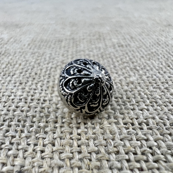 Du bekommst den Knopf in Alt-Messing und -Silber.