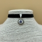Das schöne Samtband-Collier mit tief-schwarzen Samt ziert jeden Hals.